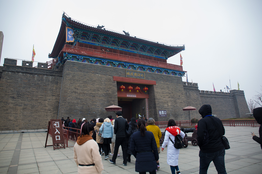 10日早上在濟南響晴的陽光沐浴下,大巴發(fā)往旅行第一個目的地-東平水滸影視城,這里是以影視拍攝服務(wù)為主,兼具觀光休閑功能的旅游景區(qū),景區(qū)完美復(fù)制了宋朝東平府的構(gòu)造格局,讓游客能身臨其境的感受到水滸傳的文化魅力。古香古色的街巷和形象逼真的演員表演,如同穿越回到北宋時期。