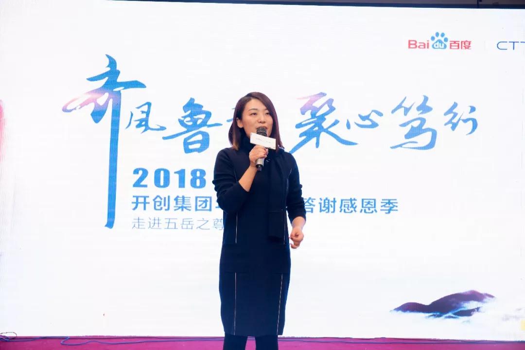 ”結(jié)束一天的游玩之后,隊伍來到泰山腳下,當(dāng)晚7點,答謝晚宴正式開始。開創(chuàng)集團副總裁葉玲首先上臺致辭:“客戶是企業(yè)發(fā)展的老師,越挑剔的客戶越是企業(yè)進步的動力,年初周總提出了新的集團使命-打造生態(tài)平臺和共生組織,讓用戶和員工共同成長。這也是我們在自身發(fā)展的同時積極回饋社會,回饋客戶的表現(xiàn)?!比~總的致辭樸實而真摯,博得陣陣掌聲。